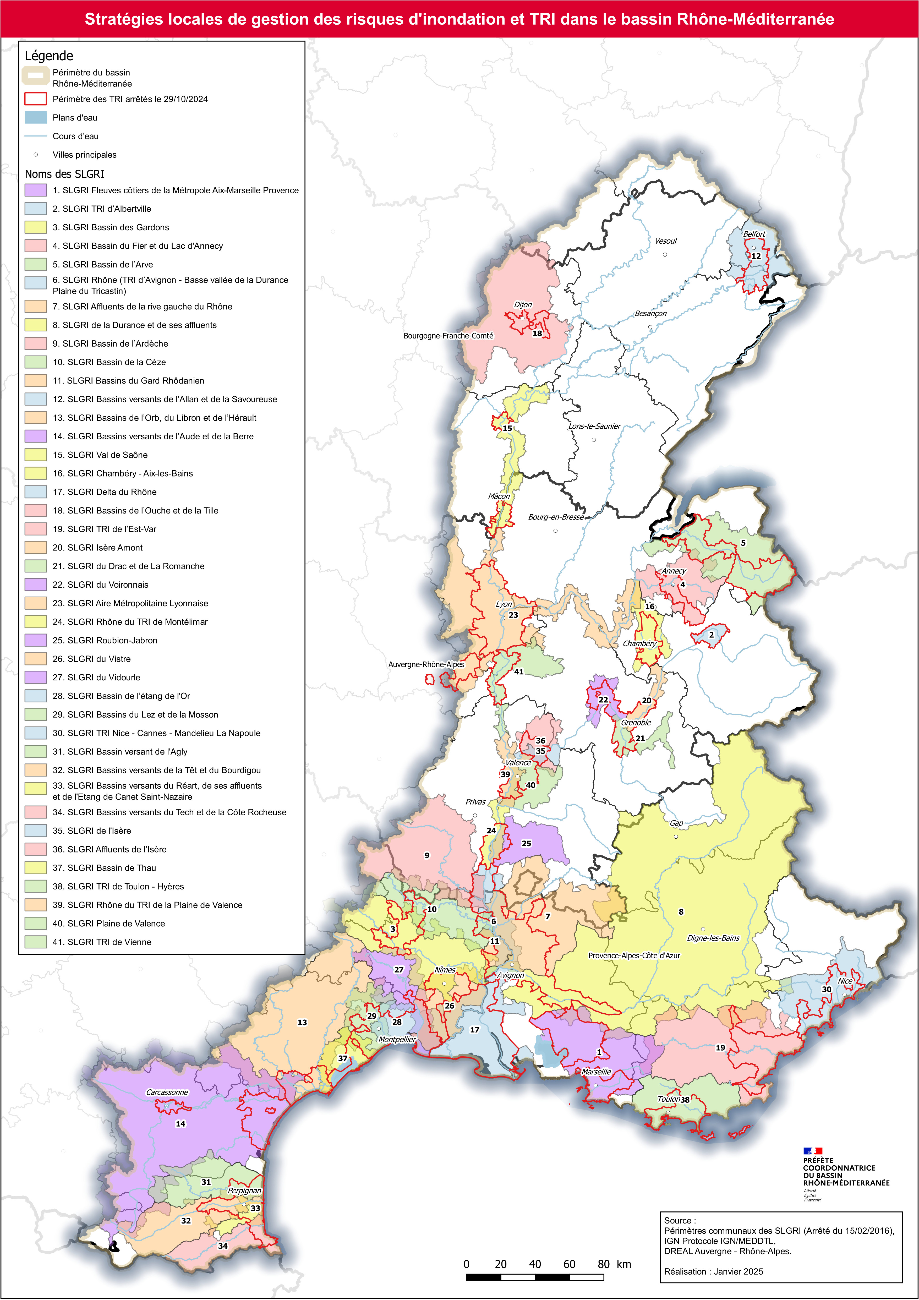 La liste des périmètres des stratégies locales et leurs objectifs ont été arrêtés par le Préfet coordonnateur de bassin Rhône-Méditerranée le 15 février 2016.